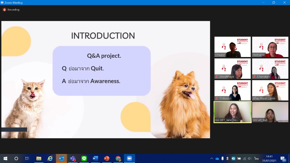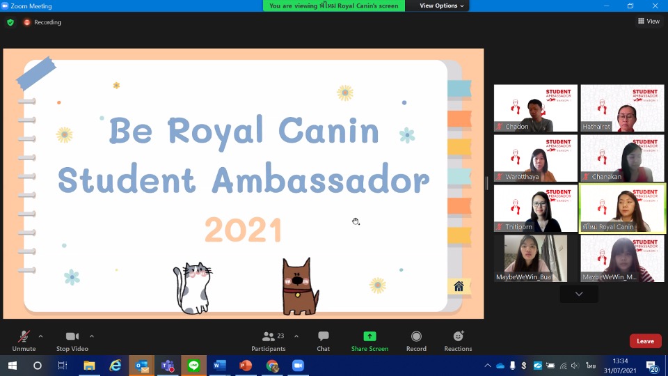 ประสบความสำเร็จด้วยดี กับแคมเปญ “Royal Canin Vet Camp & Student Ambassador Program ครั้งที่1” การจัดกิจกรรมออนไลน์ร่วมกันระหว่างนักศึกษาสัตวแพทย์ต่างมหาวิทยาลัย โดย โรยัล คานิน (Royal Canin) ผู้นำด้านโภชนาการอาหารแมวและสุนัข ที่จุดประกายให้นักศึกษาได้มาเรียนรู้และเตรียมความพร้อม สู่การทำงานอย่างจริงจัง มีนักศึกษาคณะสัตวแพทย์ศาสตร์เข้าร่วมกิจกรรมทั้งสิ้น 17 ทีม จากมหาวิทยาลัย 15 แห่งทั่วประเทศ ซึ่งแต่ละทีมได้ทำกิจกรรมเก็บคะแนนตามโจทย์ต่างๆ เพื่อสร้างความตระหนักให้นักศึกษาในคณะสัตวแพทยศาสตร์และเจ้าของสัตว์เลี้ยงเห็นถึงความสำคัญของโภชนาการสัตว์เลี้ยงที่เหมาะสม