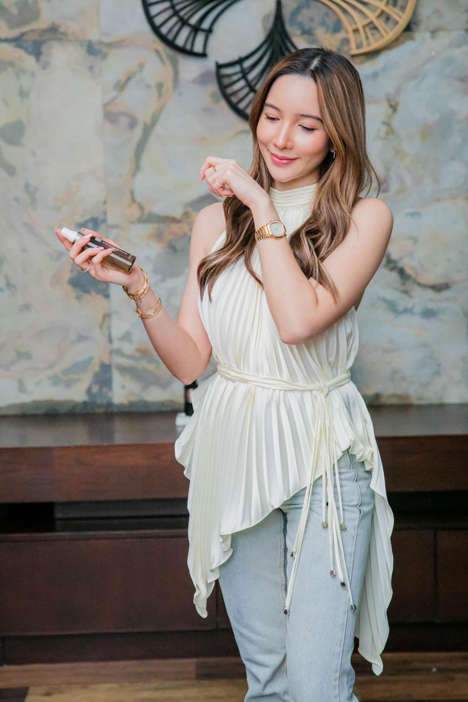 การใช้กลิ่นหอมบำบัด (Aromatherapy) จึงเป็นทางเลือกหนึ่งที่สามารถสร้างความความผ่อนคลาย เพื่อเตรียมร่างกายสู่การพักผ่อนได้อย่างเต็มที่ ซึ่งผลิตภัณฑ์ที่ใช้ในกิจกรรมครั้งนี้จะเน้นเพื่อสร้างบรรยากาศความหอมให้กับพื้นที่ต่างภายในบ้านตามหลักการใช้กลิ่นหอมบำบัด (Aromatherapy) ได้แก่ เครื่องกระจายกลิ่นหอม (Electric aroma diffuser) ราคา 4,390 บาท ทำงานด้วยกลไกการกระจายความหอมแบบ Ultrasonic Water – Oxygen โดยใช้คลื่นเสียงความถี่สูงถึง 2.5 ล้านรอบ/วินาที ทำให้น้ำแตกตัวเป็นไอเย็นที่มีโมเลกุลขนาดเล็กเพียง 5 ไมครอน นำพาน้ำมันหอมระเหยขึ้นสู่อากาศ กลิ่นหอมจึงกระจายตัวได้อย่างรวดเร็ว ซึ่งเป็นการทำงานแบบไม่ใช้ความร้อนจึงปลอดภัยสำหรับทุกคนในครอบครัว มาพร้อมกับ 2 ฟังก์ชั่นการใช้งานที่สามารถเลือกใช้ได้ตามความเหมาะสม ได้แก่ โหมดทำงานแบบต่อเนื่อง (Green Light) ตัวเครื่องจะทำงานต่อเนื่อง 3 ชั่วโมง เมื่อเสร็จการทำงานเครื่องจะปิดแบบอัตโนมัติ และโหมดควบคุมจังหวะการทำงาน (Orange Light) ตัวเครื่องจะพ่นควัน 1 ครั้ง สลับกับการหยุด 30 วินาที สามารถใช้ได้ต่อเนื่องถึง 6 ชั่วโมง