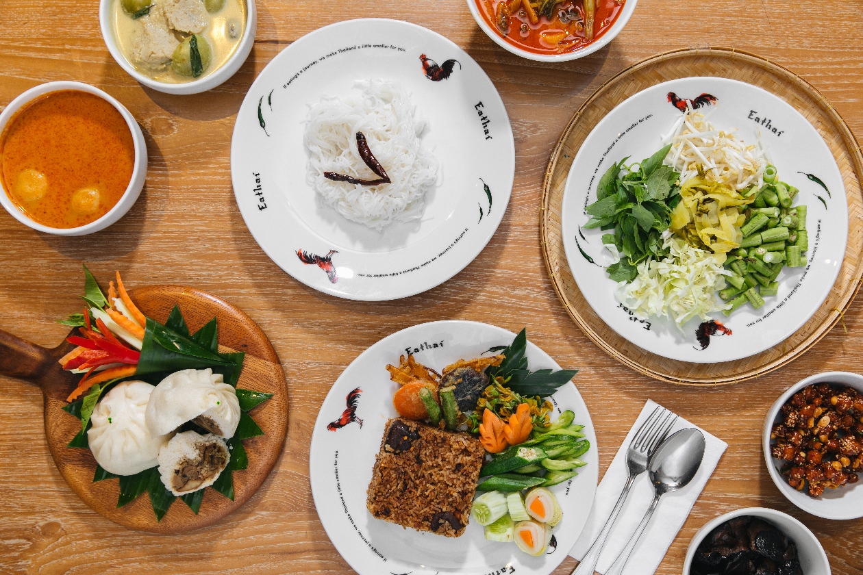 เริ่มกันที่ Eathai (อีทไทย) ที่มาแล้วต้องลอง แชมป์บ๊ะจ่าง ร้านบ๊ะจ่างชื่อดังกว่า 40 ปี อัดแน่นด้วยข้าวเหนียวเต็มคำ คัดสรรแต่วัตถุดิบที่มีคุณภาพ หรือจะเป็นสายก๋วยเตี๋ยวก็ต้องผัดหมี่ซั่วเจ ผัดหมี่เหลือง และราดหน้า จาก เคี้ยงเอ็มไพร์