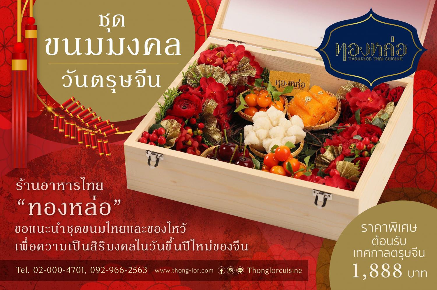 เริ่มต้นการเฉลิมฉลองแห่งปีด้วยเทศกาลตรุษจีน “ทองหล่อ” ขอแนะนำชุดขนมมงคลวันตรุษจีนเป็นชุดขนมและของไหว้เพื่อความเป็นสิริมงคลแก่ชีวิต โดยภายในชุดประกอบด้วยชุดขนมไทยในเทศกาลตรุษจีน อาทิ ขนมลูกส้ม สัญลักษณ์แห่งความโชคดี ขนมลูกท้อ สัญลักษณ์แห่งความเป็นอมตะ อายุมั่นขวัญยืน ขนมเชอรี่ สีแดง สัญลักษณ์แห่งความสวยงาม ตามด้วยขนมฝอยทองรังไหม สัญลักษณ์แห่งโชคลาภและเงินทอง ปิดท้ายด้วยขนมถ้วยฟู สัญลักษณ์แห่งความเฟื่องฟู เจริญรุ่งเรือง ด้วยความหมายอันเป็นมงคลนี้จะมอบให้ใครก็เป็นมงคล หรือจะนำไปไหว้สิ่งศักดิ์สิทธิ์ก็สร้างความเจริญรุ่งเรือง และโชคลาภให้ชีวิตรับปีฉลูทอง ราคาพิเศษเพียง 1,888 บาท