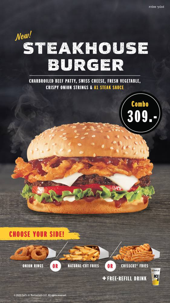 คาร์ลซ จูเนียร์ นำเมนูฮิตๆ จากฝั่งอเมริกา “The Steakhouse Burger” ส่งมาให้ฟินๆ ช่วงตรุษจีนนี้ไปจนถึงสิ้นเดือนมีนาคมนี้ (กุมภาพันธ์ - มีนาคม 2564)