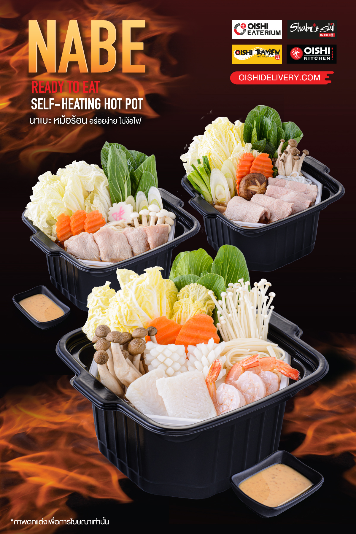 “โออิชิ” เจ้าตำรับอาหารญี่ปุ่น สร้างสรรค์และเปิดตัวเมนูซีรีส์ใหม่ “นาเบะ เซลฟ์-ฮีตติ้ง ฮอท พอท” (NABE Self-Heating Hot Pot) หม้อไฟญี่ปุ่นแบบอุ่นร้อนเองได้ โดยไม่ต้องใช้ไฟฟ้า ไม่ต้องใช้เตาอบ/ไมโครเวฟ เบื้องต้น ประเดิมด้วยเมนูหม้อไฟญี่ปุ่นแบบอุ่นร้อนเองได้ ครบครันทั้ง เนื้อหมู-เนื้อวัว-ซีฟู้ด