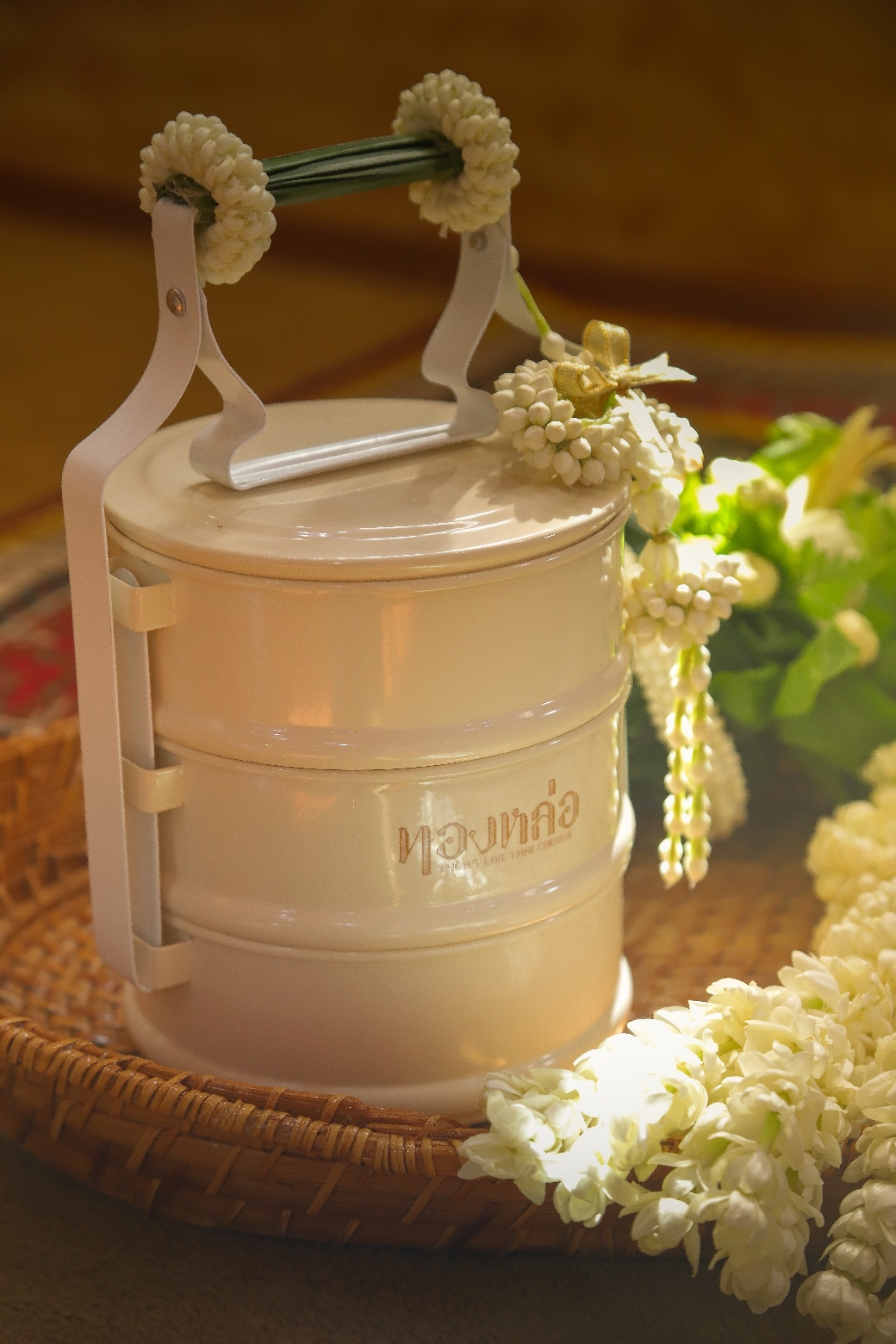 ร้านทองหล่อ ชวนคุณทำบุญสร้างกุศลแบบนิวนอร์มอล ด้วยชุดปิ่นโตมงคลอนันต์ถวายพระแบบ 3 ชั้น ประดับหูจับและพู่ห้อยด้วยดอกไม้งดงาม เสริมด้วยพวงมาลัย ภายในบรรจุอาหารไทยเลิศรสที่ปรุงอย่างพิถีพิถัน มาพร้อมผักและผลไม้แกะสลักอย่างประณีต