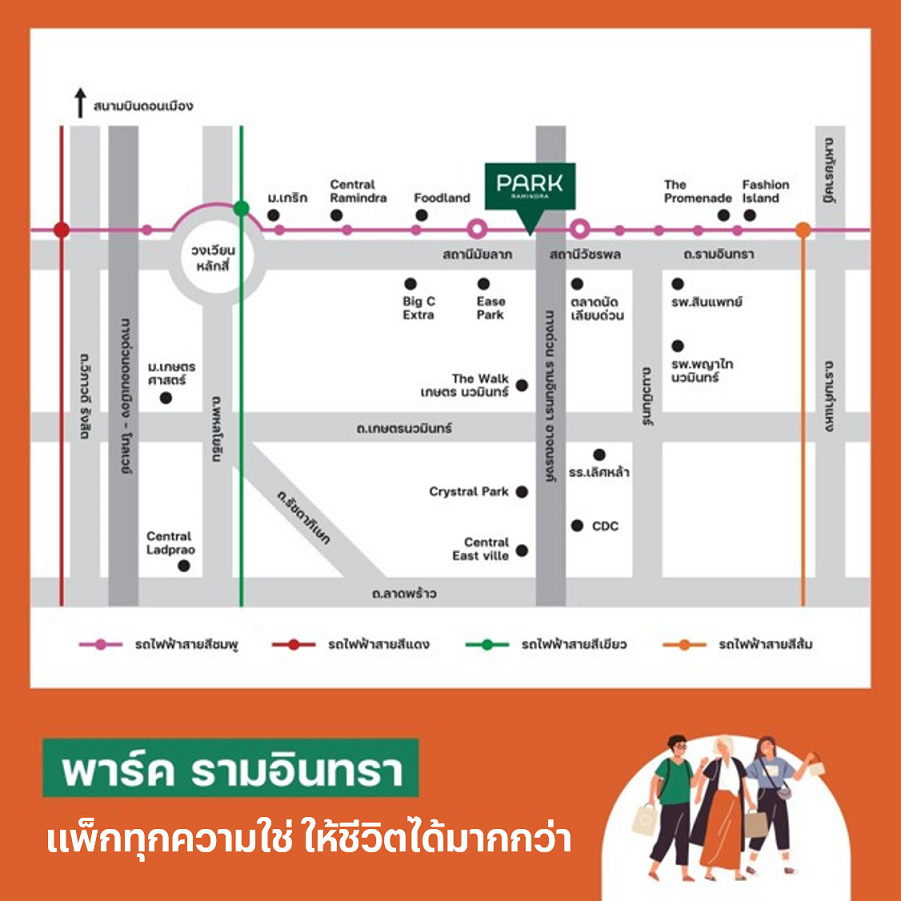 ด้วยโลเคชั่นของ “พาร์ค รามอินทรา” ที่อยู่โซนกลางของถนนรามอินทรา ใกล้ทางด่วนฉลองรัช รามอินทรา-อาจณรงค์ และดอนเมืองโทลล์เวย์ รวมถึงอยู่ห่างจากรถไฟฟ้าสายสีชมพูสถานีมัยลาภและวัชรพลเพียง 600 เมตรเท่านั้น ก็ยิ่งตอกย้ำศักยภาพทำเลที่เหนือกว่า และเมื่อผนวกกับสิ่งอำนวยความสะดวกต่างๆ ที่มีอยู่หลากหลายของย่านรามอินทราก็ต้องบอกเลยว่า “พาร์ค รามอินทรา” ตอบโจทย์การใช้ชีวิตได้อย่างครบครัน ไม่ว่าจะซื้ออยู่อาศัยเองหรือซื้อเพื่อการลงทุนก็มั่นใจได้ว่ามีความคุ้มค่าและคุ้มราคาอย่างแน่นอน