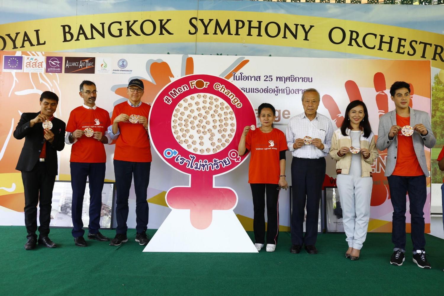 เมื่อวันที่ 29 ต.ค.ที่สวนลุมพินี นางภรณี ภู่ประเสริฐ ผอ.สำนักสนับสนุนสุขภาวะประชากรกลุ่มเฉพาะ สำนักงานกองทุนสนับสนุนการสร้างเสริมสุขภาพ (สสส.) และ Mr.Jerome Pons ผู้แทนสหภาพยุโรปประจำประเทศไทย (EU) ร่วมเปิดกิจกรรม "โครงการ #MenForChange #เราไม่ทำร้ายผู้หญิง ร่วมสร้างสังคมที่ปลอดภัยสำหรับผู้หญิง” เนื่องในวันยุติความรุนแรงต่อผู้หญิงสากล ซึ่งตรงกับวันที่ 25 พ.ย.ของทุกปี
