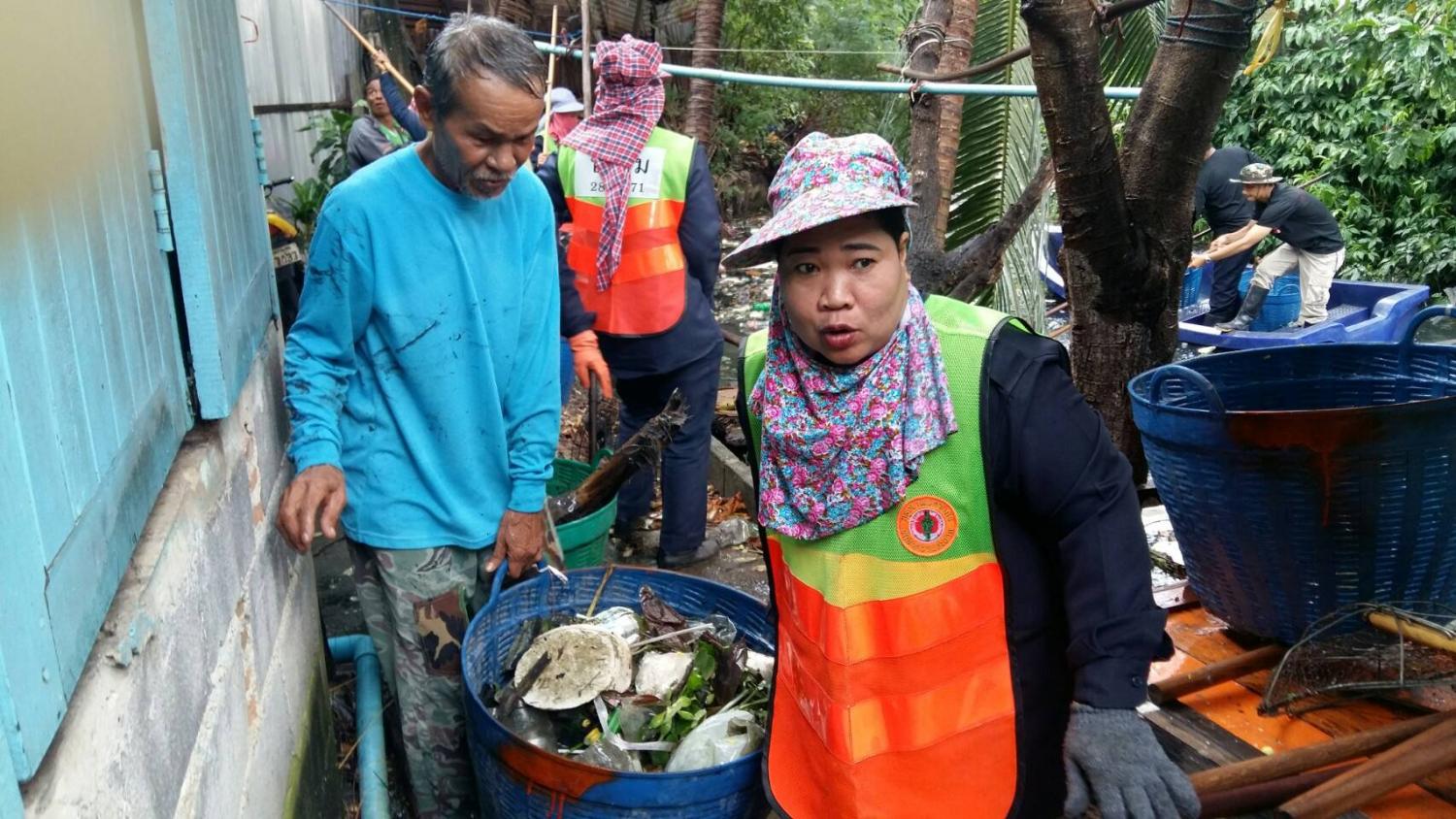 น.ส.ศศิชา ทับทิม ผู้อำนวยการเขตบึงกุ่ม มอบหมายนางสุกัญญา น้อยเกษม ผู้ช่วยผู้อำนวยการเขตบึงกุ่มหัวหน้าฝ่ายพัฒนาชุมชนฯ หัวหน้าฝ่ายรักษาความสะอาดฯ ฝ่ายโยธา พร้อมเจ้าหน้าที่ ร่วมกิจกรรมพัฒนาคลองพิชัย ต่อเชื่อมคลองแสนแสบ บริเวณชุมชนเพชรคลองจั่น ร่วมกับมหาวิทยาลัยธรรมศาสตร์ และประชาชนในชุมชน เพื่อสนับสนุนโครงการบริการสังคม เป็นแนวทางการพัฒนาคลองพิชัยต่อเนืองคลองแสนแสบอย่างยั่งยืน โดยจัดเก็บขยะ ผักตบชวาขึ้นจากคลอง ตัดแต่งต้นไม้ริมคลอง และประชาสัมพันธ์ให้ประชาชนมีจิตสำนึกไม่ทิ้งขยะลงแม่น้ำลำคลอง