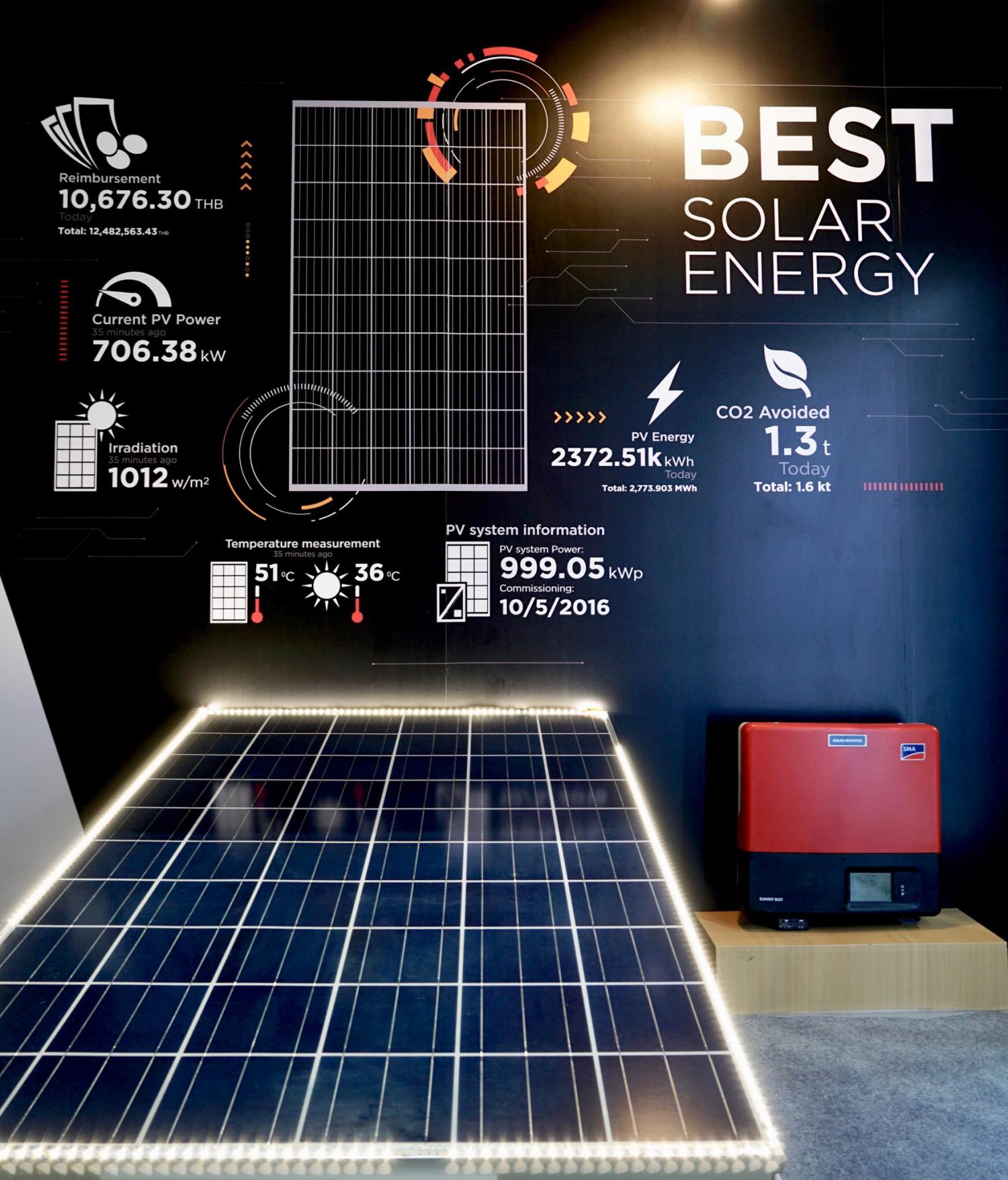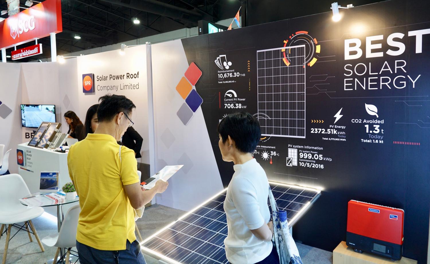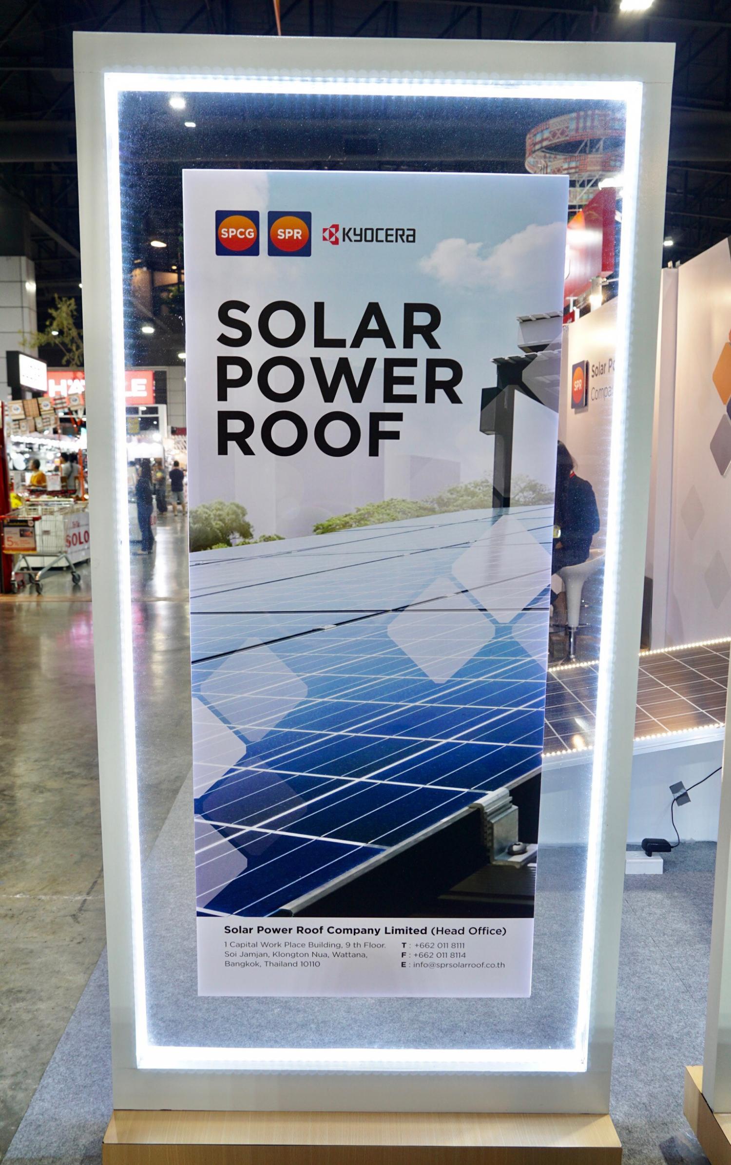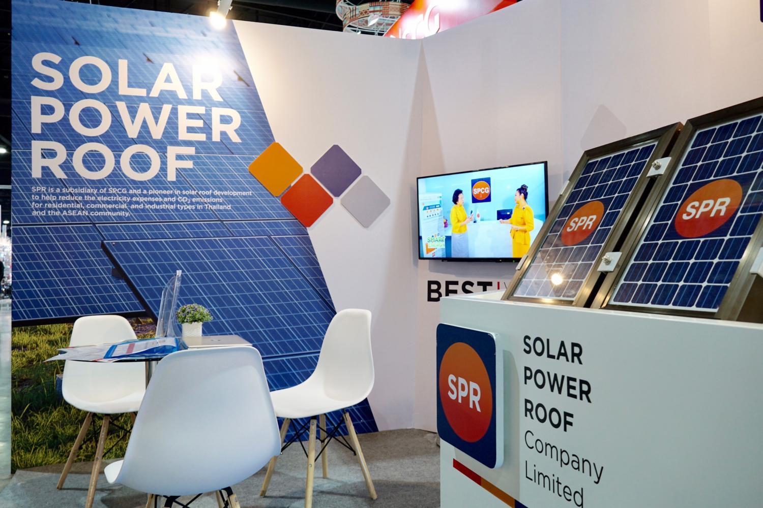 SPR Solar Roof ผู้จำหน่ายและติดตั้งระบบผลิตไฟฟ้าพลังงานแสงอาทิตย์บนหลังคา ทั้งในกลุ่มลูกค้าบ้านที่อยู่อาศัย อาคารพาณิชย์ อาคารสำนักงาน อาคารส่วนราชการ และโรงงานอุตสาหกรรม ได้จัดแสดงนวัตกรรมการผลิตไฟฟ้าจากพลังงานแสงอาทิตย์ เพื่อประหยัดค่าใช้จ่ายด้านไฟฟ้า โดยนำแผงเซลล์แสงอาทิตย์ จากเคียวเซร่า, ประเทศญี่ปุ่น และเครื่องแปลงกระแสไฟฟ้าจาก SMA พร้อมทั้งตัวอย่างอุปกรณ์ที่ใช้ในการติดตั้งจริงจัดแสดงภายในบูธ