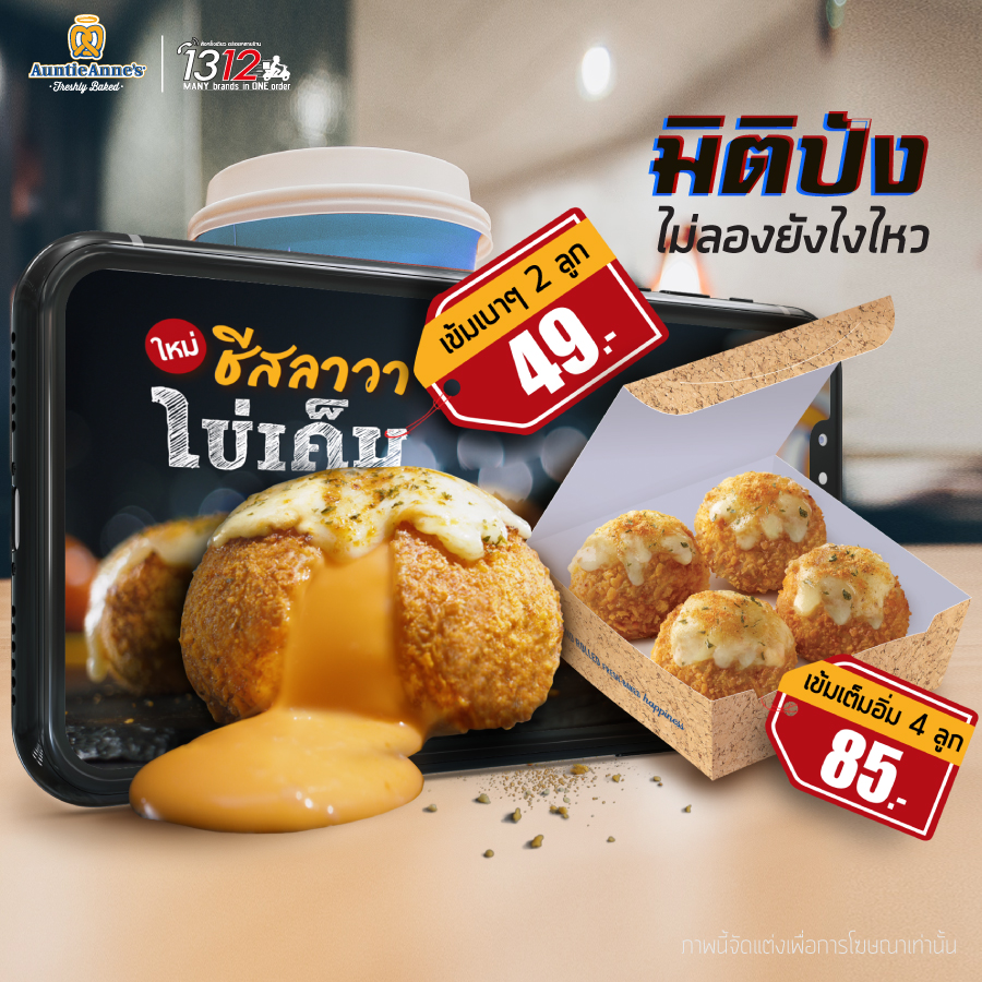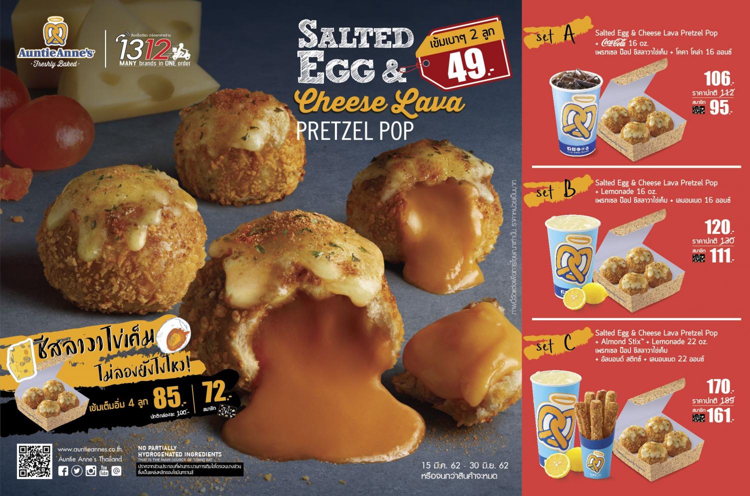 เมนูสุดฮิตแห่งปี “Salted Egg & Cheese Lava Pretzel POP” เพรทเซลสอดไส้ชีสลาวาไข่เค็ม ไม่ลองยังไงไหว ครั้งแรกกับซอสไข่เค็มเข้มข้น และ Cheddar Cheese Sauce ที่มารวมกันเป็นลาวาอยู่ด้านในแป้งเพรทเซลสูตรเฉพาะจาก อานตี้ แอนส์ คลุกเคล้าด้วย Parmesan Cheese และ Crumb blend Cheese ท๊อปด้านบนด้วย Mozzarella Cheese เพิ่มความกลมกล่อมด้วย BBQ Seasoning อร่อยเข้มแบบนี้ เริ่มต้นเพียง 49 บาท (2 ลูก) หรือจะเลือกอร่อยเข้มเต็มอิ่ม 4 ลูก เพียง 85 บาท (ปกติกล่องละ 100 บาท) สมาชิก CRG Gift Card เพียง 72 บาท หรือเลือกอร่อยเป็น set
