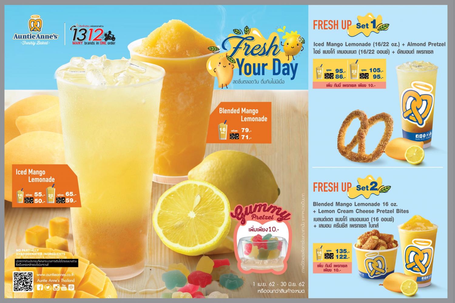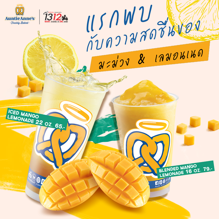เมนูปิดท้าย พูดถึงซัมเมอร์ทั้งที อานตี้ แอนส์ขอชวนคุณมาสดชื่น คลายร้อน แบบสุดๆไปกับ เครื่องดื่มใหม่มีให้เลือก 2 แบบ ทั้งแบบเย็นและแบบปั่นเริ่มต้นด้วย “Iced Mango Lemonade” ที่มีส่วนผสมของ Mango Jelly, น้ำ Mango เข้มข้น และ Lemonade สูตรเฉพาะจาก อานตี้ แอนส์ ดื่มปุ๊ป สดชื่นปั๊ป มีให้เลือกอร่อย 2 ขนาด ในราคาเริ่มต้นเพียง แก้วละ 55 บาท ตามต่อมาด้วย “Blended Mango Lemonade” อร่อยสดชื่น ได้รสมะม่วงน้ำดอกไม้เน้นๆ ผสานเข้ากันกับ Mango Soft Serve และ Lemonade เปรี้ยว หวาน ลงตัวสุดๆ
