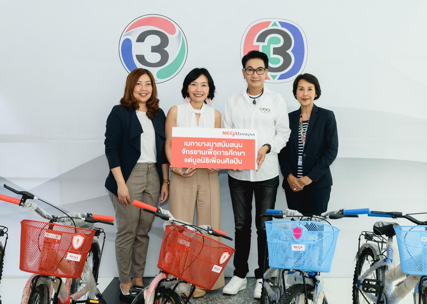 มอบจักรยาน-สิรินฉัตร แสงศรี ผู้แทน ศูนย์การค้าเมกาบางนา มอบจักรยานให้กับ วรายุฑ มิลินทจินดา ตัวแทนจากมูลนิธิเพื่อนศิลปิน และ ช่อง 3 เพื่อนำไปมอบให้กับเด็กๆ ในโรงเรียนตำรวจตระเวนชายแดนบ้านดงตาหวาน ในพระอุปถัมภ์ของสมเด็จพระเทพรัตนราชสุดาฯสยามบรมราชกุมารี จ.อุบลราชธานี