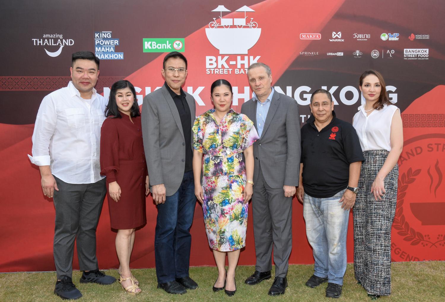ดันสตรีทฟู้ด- ฐาปนีย์ เกียรติไพบูลย์ ผอ.ฝ่ายส่งเสริมสินค้าการท่องเที่ยว ททท. นำทีม คิง เพาเวอร์มหานคร, กสิกรไทย, ออลออฟลัค และ พันธมิตร แถลงจัดงาน Bangkok – Hong Kong Street Battle Food Festival วันที่ 13-17 มี.ค.62 ที่มหานคร สแควร์ โดยมี มาร์ค เบกาสารท, อภิรัตน์ หวานชะเอม, ม.ร.ว.รุจยาภา อาภากร และ ธัญรักษ์ ณ วังขนาย ร่วมงาน ณ ร้านวังหิ่งห้อย อาร์ซีเอ
