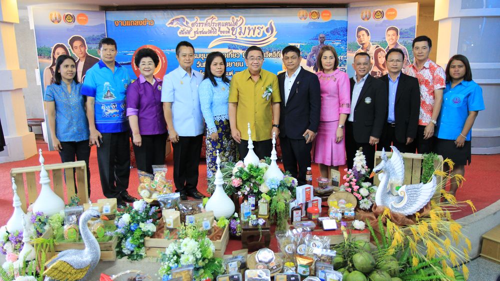 ของดีชุมพร – วิบูลย์ รัตนาภรณ์วงศ์ ผวจ.ชุมพร แถลงจัดงาน "สวรรค์ประตูแดนใต้ สัมผัสชุมชน นวัตวิถี ของดีชุมพร" เพื่อสร้างช่องทางการตลาด และรายได้ให้แก่ชุมชน พร้อมกับเปิดตัวชุมชนท่องเที่ยว OTOP นวัตวิถี 29 ชุมชนของจ.ชุมพร ณ โรงแรมแกรนด์ พาเลซชุมพร จ.ชุมพร///