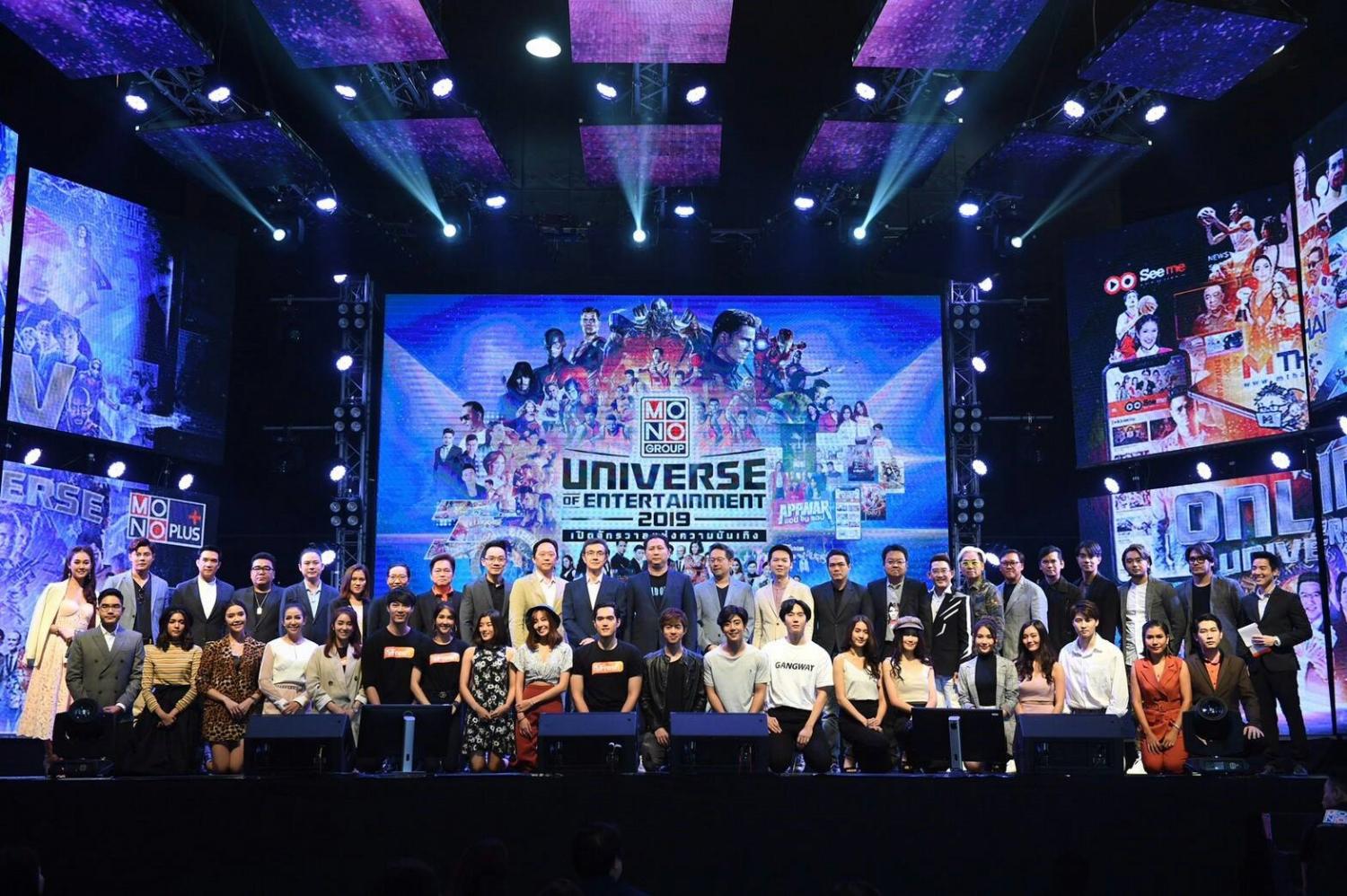 เปิดจักรวาล-พิชญ์ โพธารามิก ประธานกรรมการ บริษัท โมโน เทคโนโลยี หรือ โมโน กรุ๊ป พร้อมผู้บริหาร ร่วมจัดงาน MONO GROUP : UNIVERSE OF ENTERTAINMENT 2019 เปิดจักรวาลแห่งความบันเทิง โดยมี ผู้จัด, นักแสดง, ศิลปิน, ผู้ประกาศ, พิธีกร, ดีเจ, หมอดู ฯลฯ เข้าร่วมเปิดจักรวาลแห่งความบันเทิงอย่างคับคั่ง ณ โมโน ทเวนตี้ไนน์ สตูดิโอ ถ.ชัยพฤกษ์