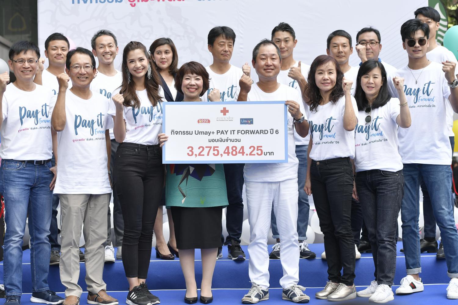 มอบเงิน-ฮิโตชิ โยโกฮามา ซีอีโอ บริษัท อีซี่บาย จัดกิจกรรมเพื่อสังคม ยูเมะพลัส “ส่งต่อ...ความห่วงใย” ปี 6 พร้อมมอบเงินบริจาค 3,275484.25 บาท ให้แก่ จันทร์ประภา วิชิตชลชัย รอง ผอ.สำนักงานจัดหารายได้ สภากาชาดไทย โดยมี มารี เบรินเนอร์ และ นนท์ ธนนท์ร่วมด้วย ณ ลานด้านหน้ายูไนเต็ดเซ็นเตอร์ สีลม
