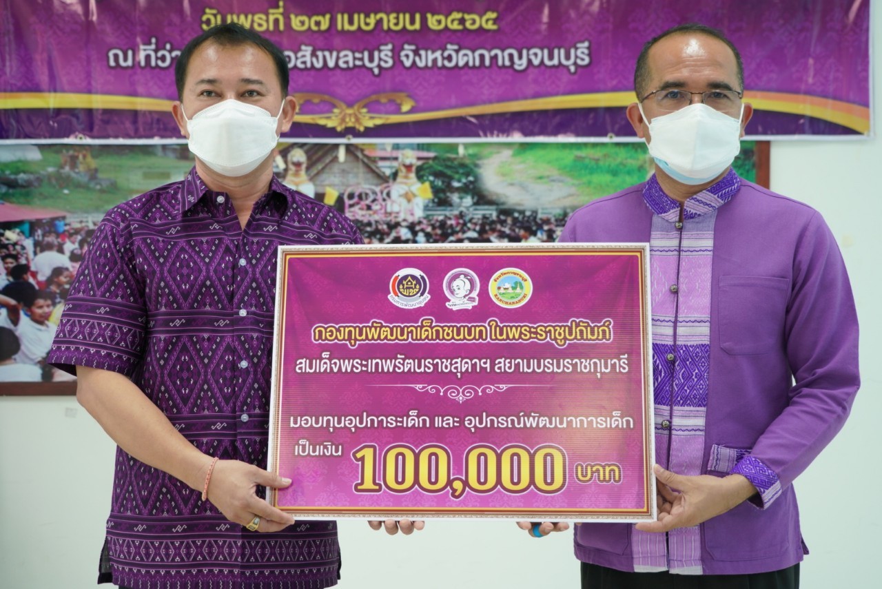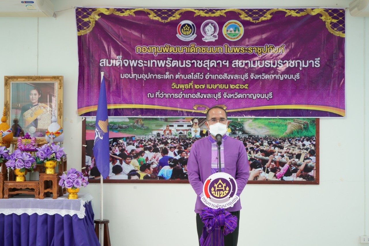 กาญจนบุรี-อธิบดี พช.มอบทุนอุปการะเด็กของกองทุนพัฒนาเด็กชนบทในพระราชูปถัมภ์สมเด็จพระเทพรัตนราชสุดา ฯ ในพื้นที่ อ.สังขละบุรี