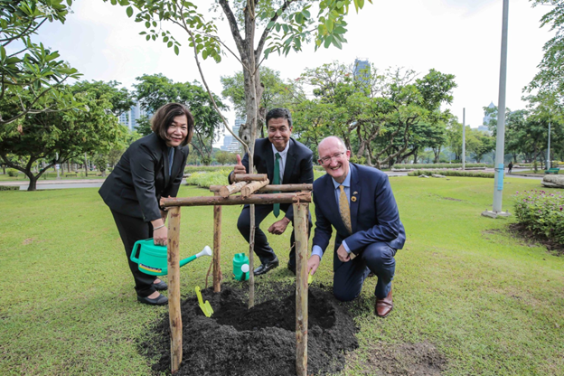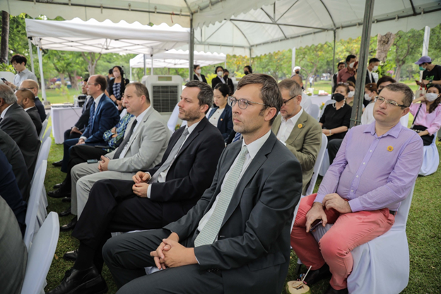 โดยในงานมีนายชัชชาติ สิทธิพันธุ์ ผู้ว่าราชการกรุงเทพมหานคร และนางสาวบุษฎี สันติพิทักษ์ รองปลัดกระทรวงการต่างประเทศ ร่วมกับ ฯพณฯ นายเดวิด เดลี เอกอัครราชทูตสหภาพยุโรปประจำประเทศไทย ปลูกต้นพะยูงสามต้นเพื่อเป็นสัญลักษณ์แห่งมิตรภาพระหว่างสหภาพยุโรปและประเทศไทย โดยต้นพะยูงเป็นไม้ที่มีความเสี่ยงในการสูญพันธุ์ โดยสหภาพยุโรปได้มีสวนร่วมในการอนุรักษ์พันธุ์ไม้นี้ผ่านการให้ทุนสนับสนุนโครงการ Partners Against Wildlife Crime ในงานยังมีคณะทูตานุทูตจากสถานเอกอัครราชทูตของประเทศสมาชิกสหภาพยุโรปและอาเซียน พร้อมด้วยคณะทูตานุทูตจากประเทศต่างๆ ทั่วโลกและแขกผู้มีเกียรติท่านอื่นเข้าร่วม