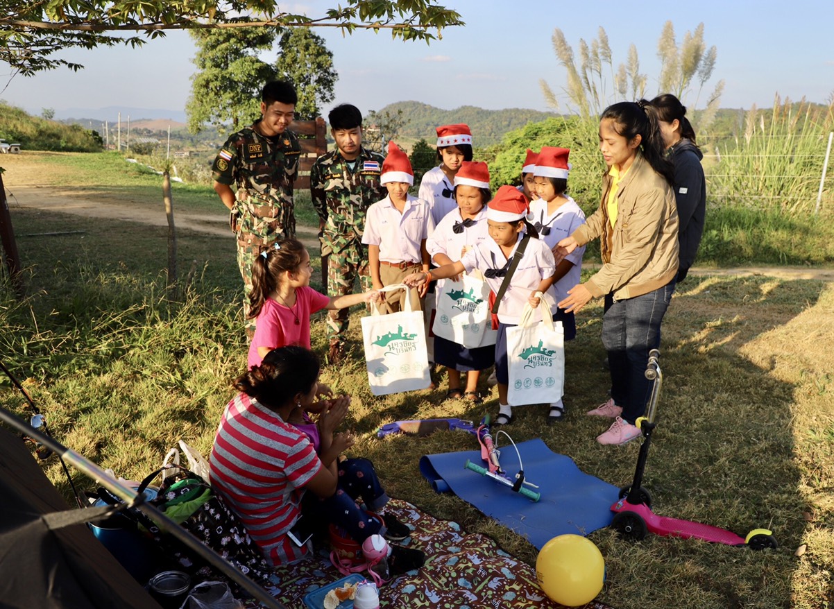 เมื่อวันที่ 25 ธ.ค. 2561 ที่บริเวณจุดสกัดเขาสูงเขาแผงม้า อำเภอวังน้ำเขียว จังหวัดนครราชสีมา เด็กนักเรียนระดับชั้นประถมศึกษา โรงเรียนบุเจ้าคุณ อ.วังน้ำเขียว ได้แต่งกายสวมหมวกเป็นซานตาคลอสต้อนรับเทศกาลคริสต์มาส นำถุงผ้าไปเดินแจกให้กับนักท่องเที่ยวที่มานอนกางเต็นท์รับลมหนาวและส่องดูกระทิง เพื่อเป็นการรณรงค์ให้นักท่องเที่ยวใช้ถุงผ้าแทนถุงพลาสติก ลดขยะมลพิษ ลดโลกร้อน และช่วยกันดูแลรักษาสิ่งแวดล้อม