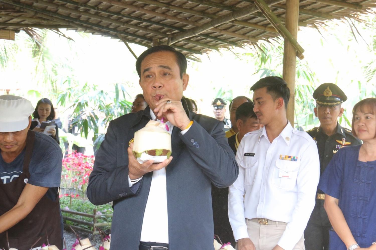 ทั้งนี้ นายกฯได้ชิมอาหารของร้านต่างๆ หลังจากนั้นได้ฟังบทเพลงจากนักเรียนโรงเรียนบ้านเขารวก (ร่วมมิตรพัฒนา) ในบทเพลงเพราะเธอคือประเทศไทย นายกฯได้เล่นกลองแต๊กกับเด็ก ๆ พร้อมบอกเด็ก ๆ ว่า เวลาเล่นดนตรีต้องยิ้ม พร้อมแนะนำด้วยว่า รมว.มหาดไทย เคยเป็นวงดุริยางค์เก่า พร้อมให้ตีกลองโชว์ด้วย