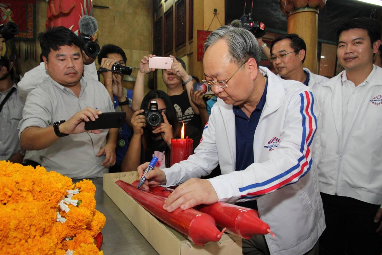 เมื่อวันที่ 28 ม.ค. นายสนธิรัตน์ สนธิจิรวงศ์ เลขาธิการพรรคพลังประชารัฐ(พปชร.) พร้อมด้วยว่าที่ผู้สมัคร ส.ส.สมุทรปราการ ทั้ง 7 เขต ได้แก่ นายอัครวัฒน์ อัศวเหม นายวรพร อัศวเหม นายต่อศักดิ์ อัศวเหม น.ส.ภริม พูลเจริญ นายจาตุรนต์ นกขมิ้น นายกรุงศรีวิไล สุทินเผือก นายฐาปกรณ์ กุลเจริญ และ น.ส.ไพลิน เทียนสุวรรณ ได้เข้ากราบไหว้สักการะศาลเจ้าพ่อหลักเมืองสมุทรปราการ สิ่งศักดิ์สิทธิ์คู่บ้านคู่เมืองสมุทรปราการ พร้อมจุดเทียนสีแดงคู่ ที่เขียนข้อความพรรคพลังประชารัฐ เพื่อเป็นสัญลักษณ์เอาฤกษ์เอาชัยในโอกาสที่มาหาเสียงในพื้นที่ท่ามกลางสมาชิกพรรคและประชาชนรอให้การต้อนรับอย่างคึกคัก