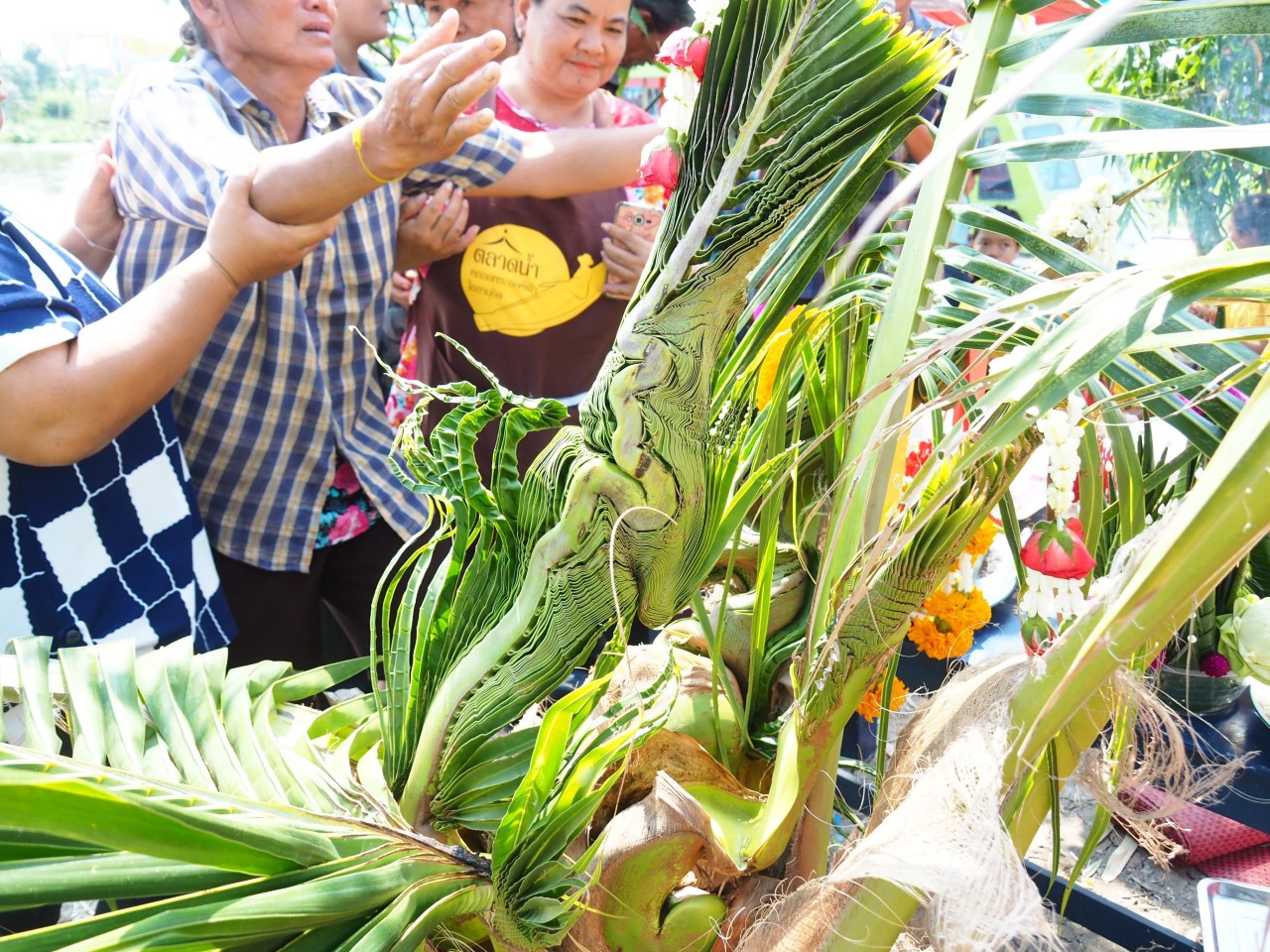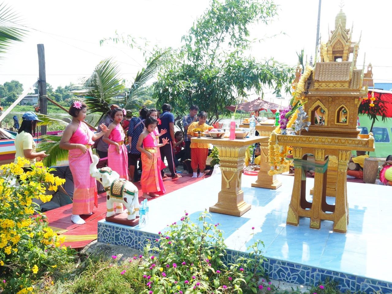 ขณะที่ นายเจริญ รุ่งแสงจันทร์ ประธานเครือข่ายกองทุนหมู่บ้านผู้ใหญ่บ้านหมู่ 10 ต.บ้านระกาศ อ.บางบ่อ ได้นำเด็กนักเรียนมารำถวายพญานาค เพื่อขอพรจากองค์พญานาคและบูชาเจ้าที่ เพื่อความเป็นสิริมงคล โดยกล่าวว่า โครงการประชารัฐ เป็นโครงการท่องเที่ยวระดับอำเภอ จึงได้งบประมาณมาจากกองทุนหมู่บ้านทุกกองทุนเข้ามาร่วมหุ้นกับเรา ตอนนี้มีอยู่ 60 กองทุน เพื่อจัดทำประชารัฐท่องเที่ยวขึ้นมา ดังนั้นที่อ.บางบ่อจึงมีเรือท่องเที่ยวตามคลอง อยู่ 1 แห่งคือที่นี่