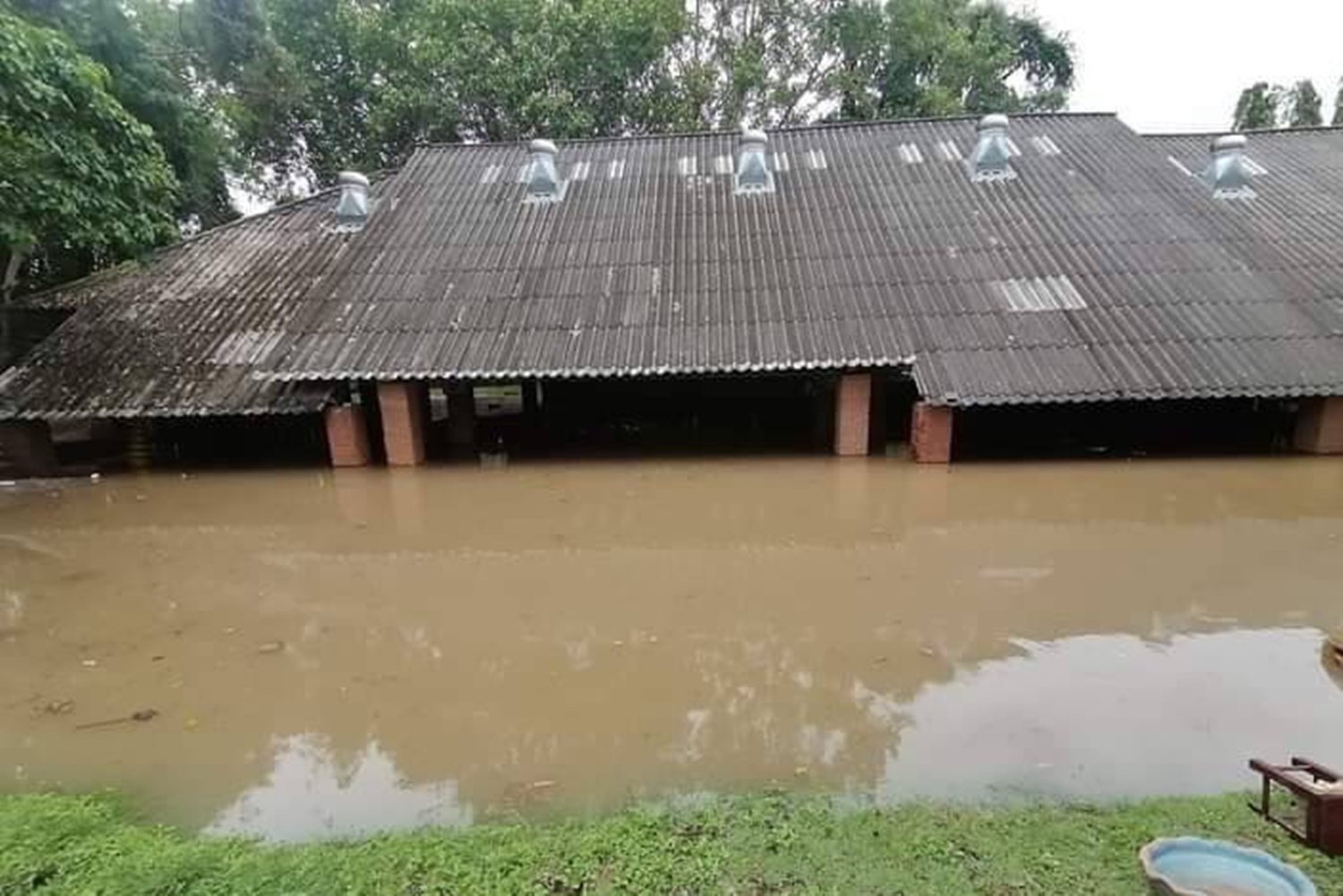 นครราชสีมา-น้ำป่าไหลเข้าท่วมองค์พระนอนสมัยทวารวดีอายุ 1,300 ปีใหญ่ที่สุดในประเทศไทยเกือบมิดองค์พระ ขณะที่บ้านเรือนกว่า 160 หลังถูกน้ำท่วมสูงกว่า 1 เมตร