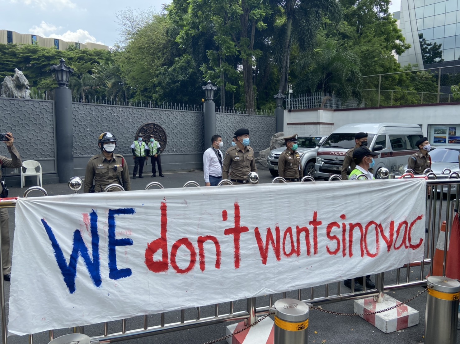 เมื่อวันที่ 20 ส.ค. เวลา 13.57น.กลุ่มทะลุฟ้า เคลื่อนขบวนออกจากสถานทูตสหรัฐอเมริกา เดินทางถึงสถานเอกอัครราชทูตจีน ถ.รัชดาฯ เพื่อร้องเรียนปมรัฐบาลไทย จัดซื้อวัคซีนซิโนแวคจากเอกชนจีน ซึ่งมองว่าเป็นวัคซีนไม่ได้คุณภาพที่จะสามารถรับมือโควิดสายพันธุ์เดลต้าได้ โดยสถานทูตจีน ได้ส่งเจ้าหน้าที่หัวหน้ารักษาความปลอดภัยมาเป็นตัวแทนรับหนังสือ